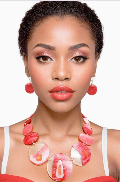 Dst Necklace Red Disc Collar Necklace and Earring Set