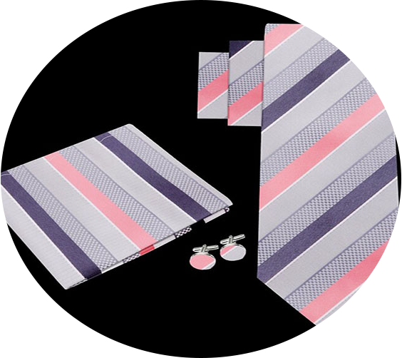 Our Exclusive Ties and Pocket Accent Sets are 100% silk and include a pair of Cuff Links.