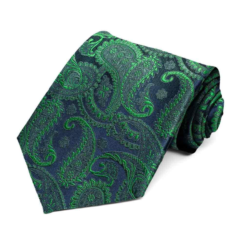 This Green/Navy Blue Paisley necktie is a warm winter color that looks wonderful with a dark suit or jacket. This will fit any casual occasion or a comfortable day at the office.