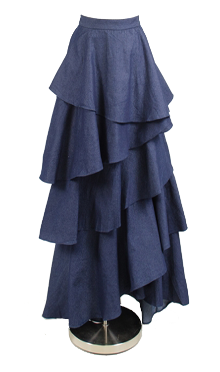This beautifully designed skirt has 4 flowing tiers and is floor length. Denim is a great choice for the spring and summer months.